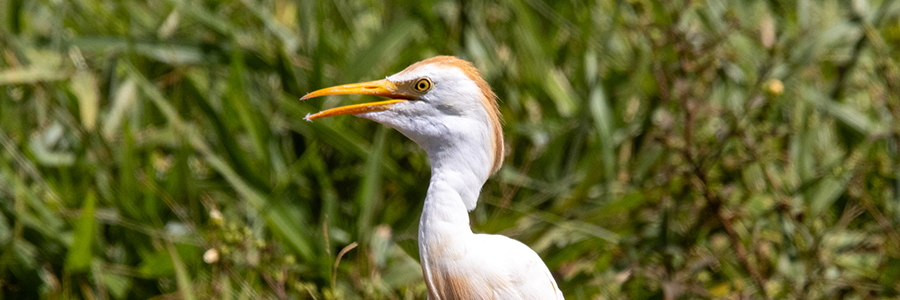 A Garça-vaqueira é uma das poucas espécies de garças que se adaptaram extremamente bem a ambientes modificados pelos humanos, como pastagens e áreas agrícolas!